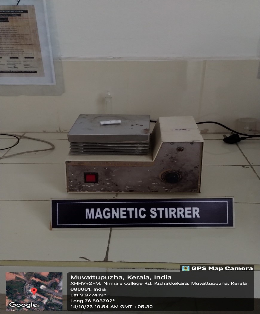 A magnetic stirrer consists of a rotating magnet or a stationary electromagnet that creates a rotating magnetic field. It is used to make a stir bar, immerse in a liquid, quickly spin, or stirring or mixing a solution for synthesise of compounds etc.